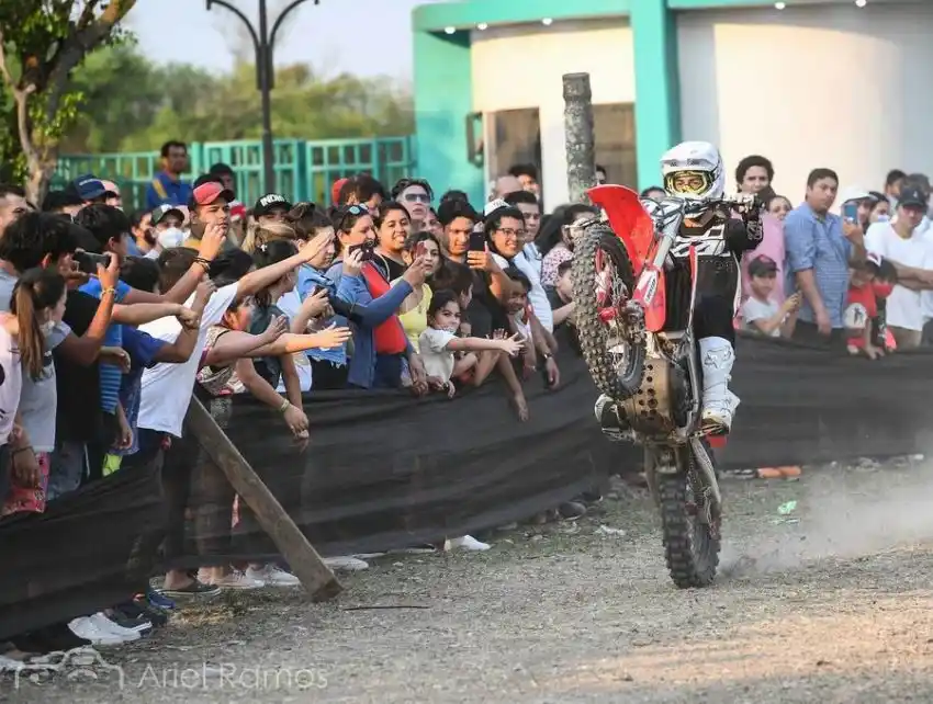 Indudablemente, la gran atracción del mega evento desarrollado el último fin de semana fue el show “Straight Rhythm” de super motocross, con la participación de afamados pilotos que desplegaron un espectáculo apreciado por una multitud de vecinos y vecinas, que incluyó distintas muestras de destrezas en motos de potente cilindrada y cuatriciclos, sobre una pista de 400 metros, en línea recta, única en el país, construída por el Municipio.