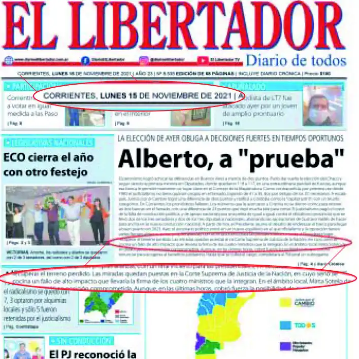 El diario El Libertador de Corrientes lo anticipó en la edición del 15 de noviembre. Cuando los analistas apuntaban a cómo reaccionaría la Vicepresidente frente a la derrota en las elecciones del 14-N, EL LIBERTADOR remarcó la importancia de ver cómo actuaría la Corte, y anticipó un fallo de alto impacto que se conoció ayer. No sólo habrá un nuevo equilibrio en la relación de fuerzas dentro del Consejo de la Magistratura, sino que además la Corte recupera poder al pasar su Presidente a ser el titular del Consejo con la posibilidad que si hubiera un empate de 10 a 10, el Presidente del Alto Tribunal pueda desempatar. En las últimas horas Alberto Fernández volvió a abogar por la ampliación del número de miembros de la Corte, que actualmente es de cinco. Los antecedentes muestran que el número con que mejor ha funcionado el Tribunal es con cinco, más allá que la imponente mesa de acuerdos tiene diez poltronas. Un proyecto del ex diputado nacional Rodolfo Martínez Llano en la Cámara baja y uno de la ex senadora Cristina Kirchner llevó a que la Corte, luego de haber llegado a nueve, se reduzca nuevamente a los cinco que actualmente tiene.