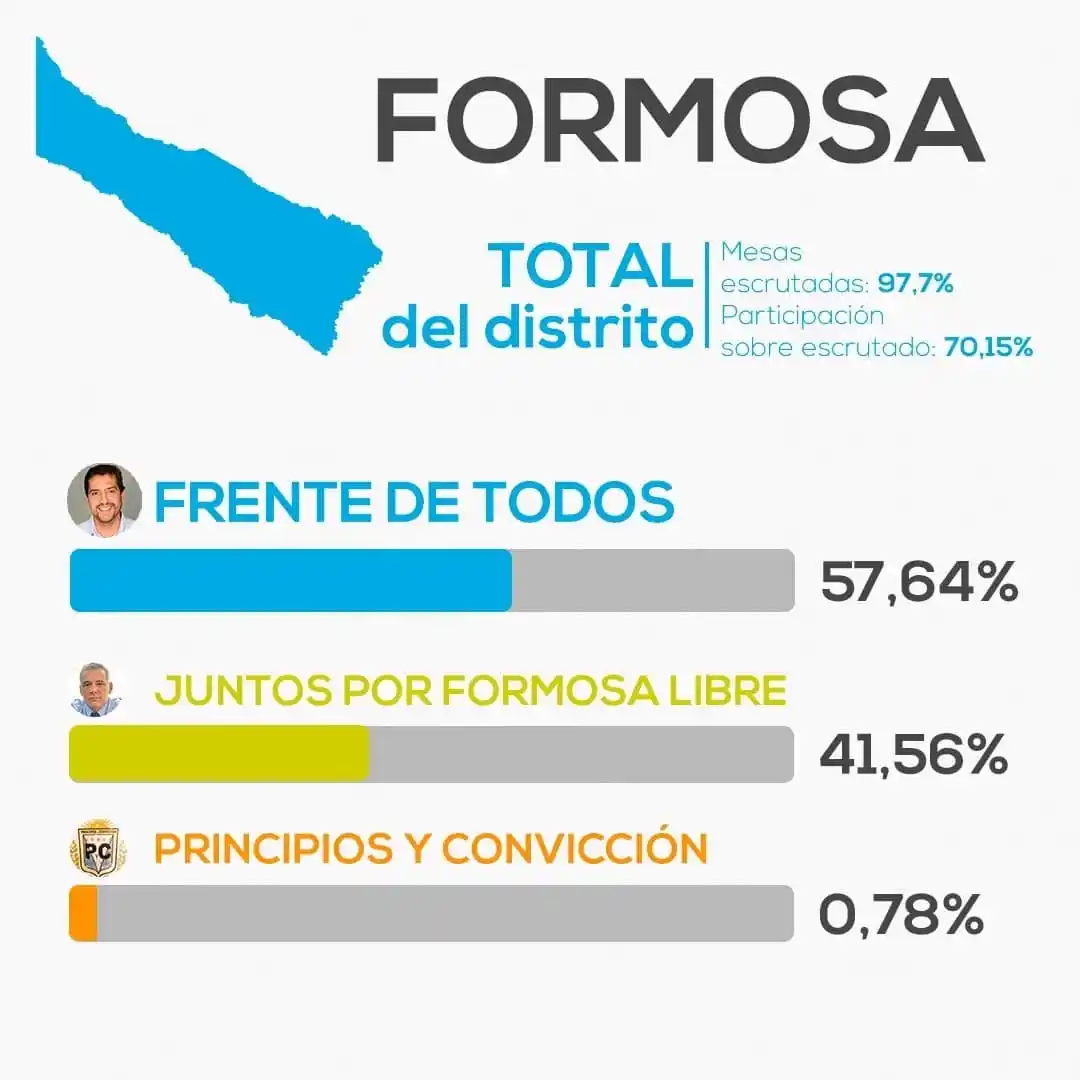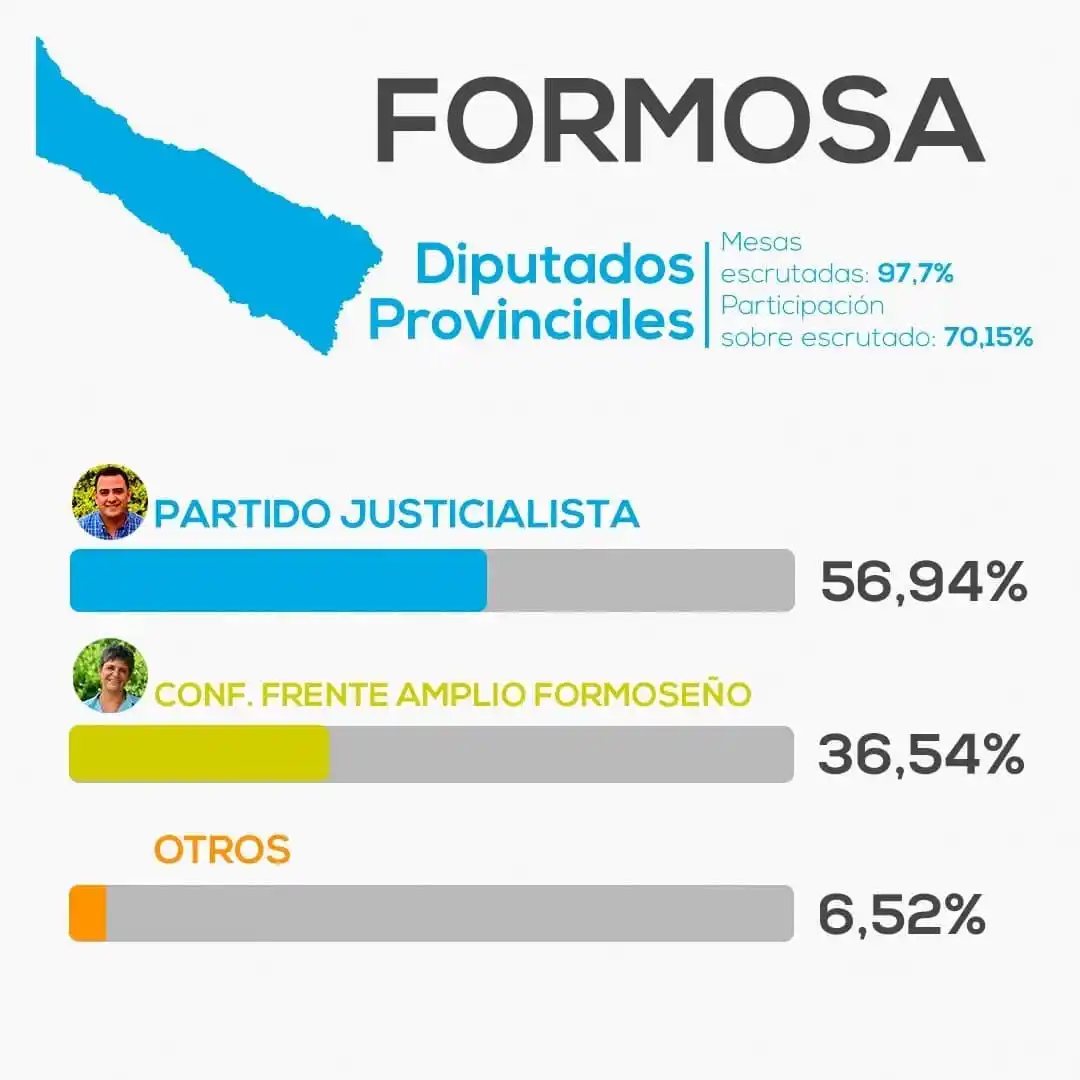 “En el ámbito provincial, con un 58% de los votos, ingresaron nueve diputados de la Alianza del Partido Justicialista (PJ) y seis de la Confederación Frente Amplio Formoseño”, señaló.