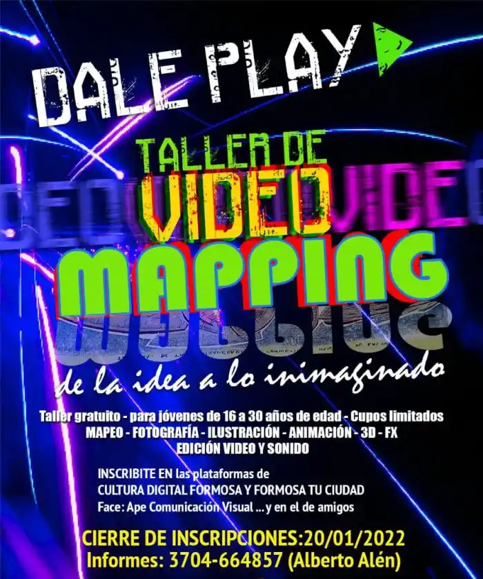 Con el apoyo de la Subsecretaría de Cultura, la Subsecretaría de Deportes, Cultura y Turismo de la Municipalidad de Formosa y Gestionar Futuro del Ministerio de Cultura de la Nación se realizará un taller de Video Mapping Arquitectónico.