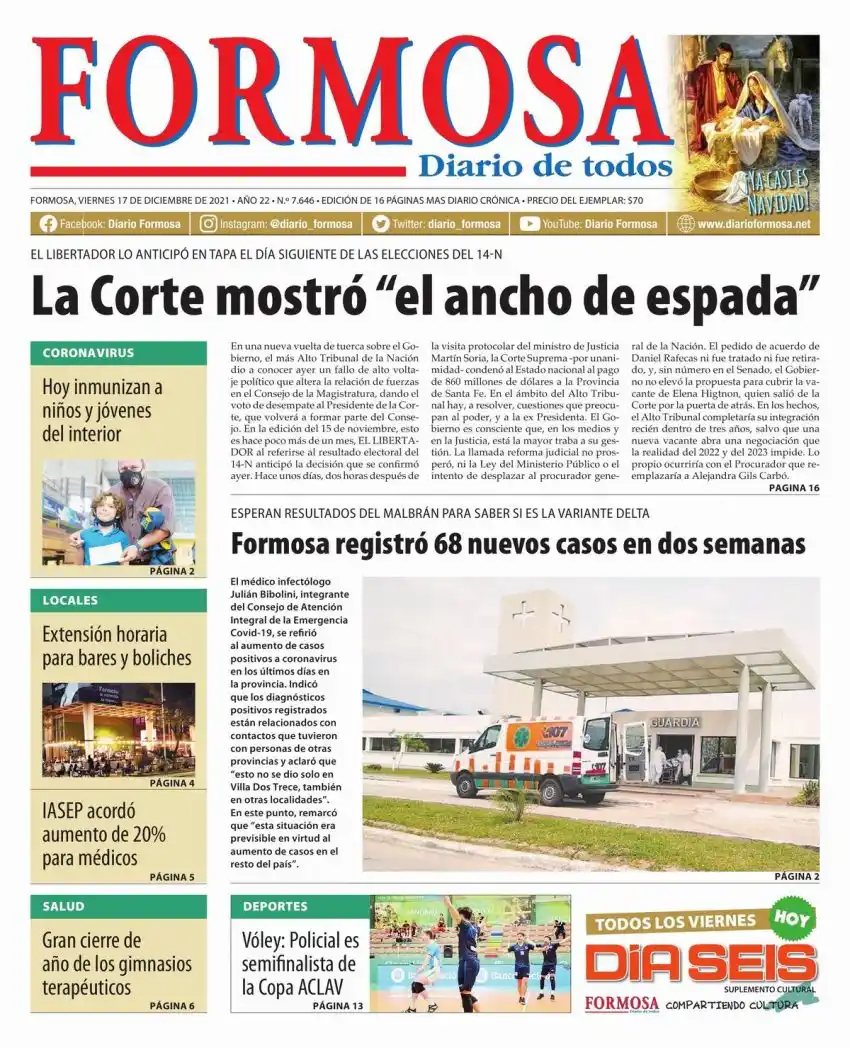 Tapa y Contratapa17 de diciembre de 2021 | 00.02 publicado hace 4 añosTapa y Contratapa 17 de diciembre de 2021Ads Recibí las noticias en tu email Recibir newsletter AdsautorDiario Formosa AdsEste contenido no está abierto a comentariosAds