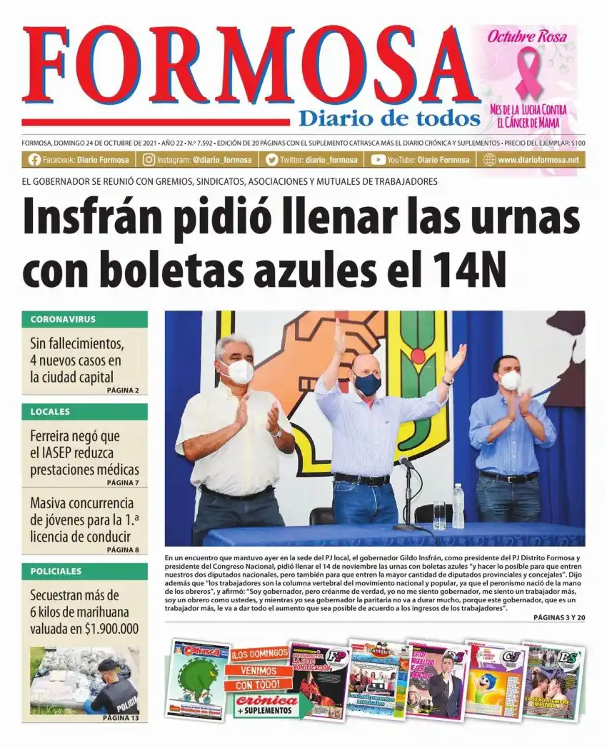 Tapa y Contratapa24 de octubre de 2021 | 00.02 actualizado hace 4 añosTapa y Contratapa 24 de octubre de 2021Ads Recibí las noticias en tu email Recibir newsletter AdsautorDiario Formosa AdsEste contenido no está abierto a comentariosAds
